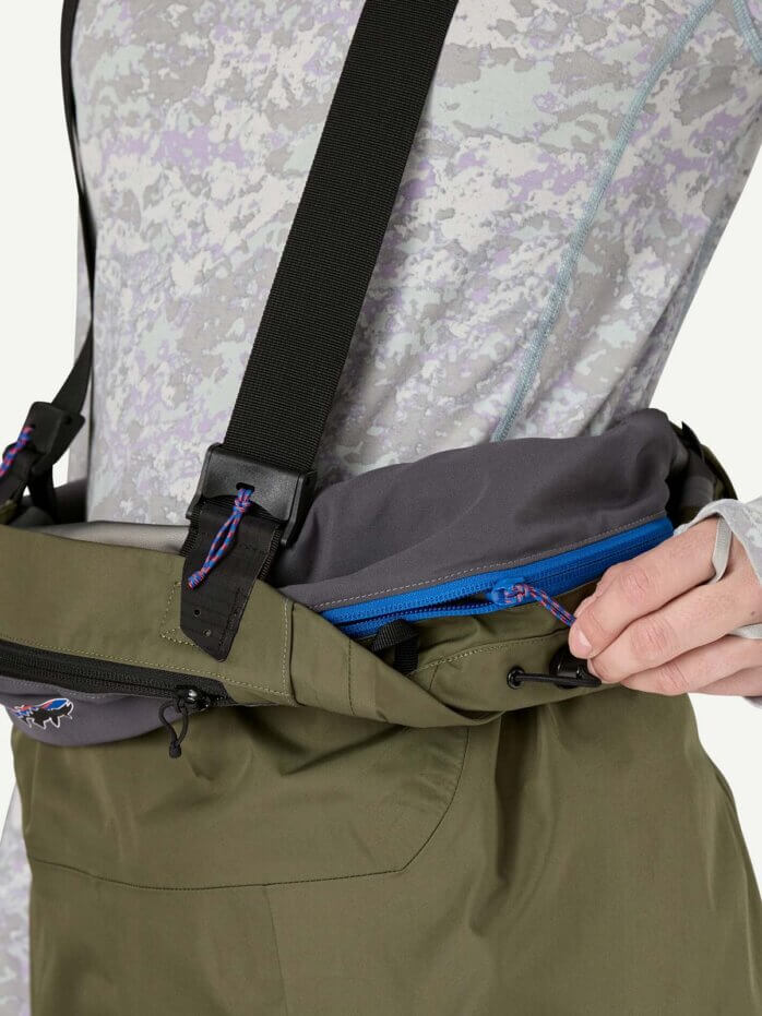 Easy chest- to waist-high conversion; with a top-hem drawcord and a Secure Stretch wading belt; drop-seat system with a low-profile buckle at the center back means quick bathroom breaks