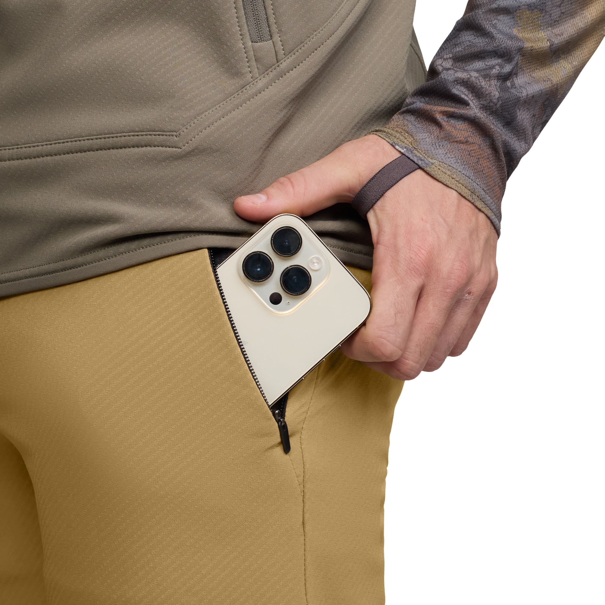 The Alpha Fleece Pant takes mid-layer comfort to new heights. The 280-gram STORMFLEECE™ fabric provides reliable warmth while a DWR treatment and double-weave build offers protection from light precipitation and rugged environments. A tapered design allows for seamless layering under waders or bibs and a low-profile hem prevents the pant legs from riding up. The zip-secure pockets and an articulated fit round out the pant’s utility and comfort as a go-to mid-layer. When the waders or bibs come off, pull on these pants for post-pursuit beers at your neighborhood brewery on the way back home.