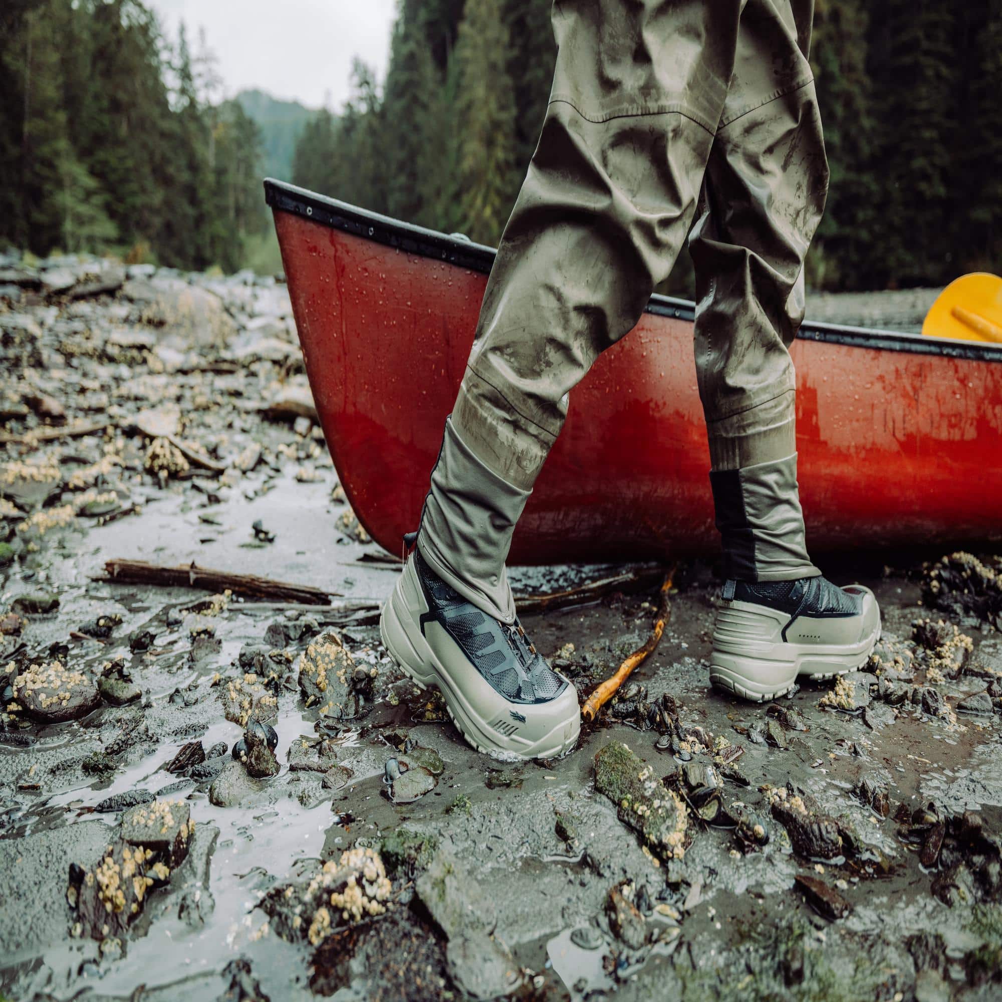 • Aggressive rubber tread provides grip across terrains above and below the waterline